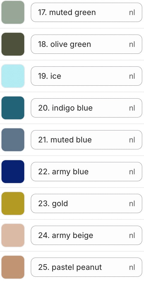 Uit volgende kleuren kan je kiezen: